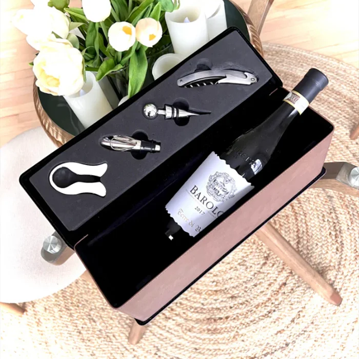 Functionality is another priority. Our boxes are lightweight, stackable, and easy to assemble, with options for custom inserts, molded compartments, or padding to securely hold bottles in place, preventing movement and damage. They are perfect for corporate gifting, luxury retail, events, or holiday promotions.